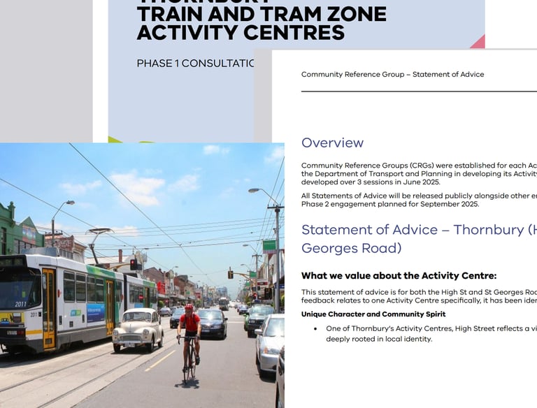 We are a community organisation fighting for the community's voice to be heard in the design of the Thornbury Activity Centre — and for smarter, fairer density that creates opportunities for urban renewal, helps solve the housing crisis and protects our neighbourhood’s character.