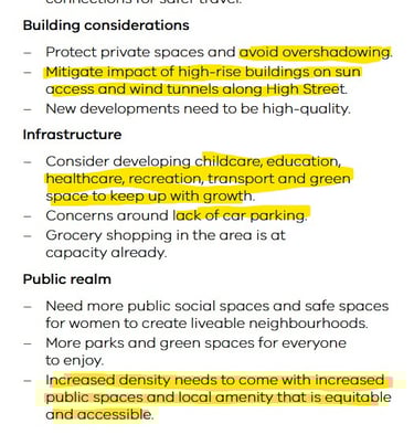 When public criticism mounted, Council claimed victory after securing a handful of largely minor edits. Vague wording stating that the Government should consult the community and conduct a street by street analysis that would have little to no impact on the State’s bulldozer approach. The only meaningful change was the reduction in heights on High Street, and still Council advocated for 10 storey buildings.